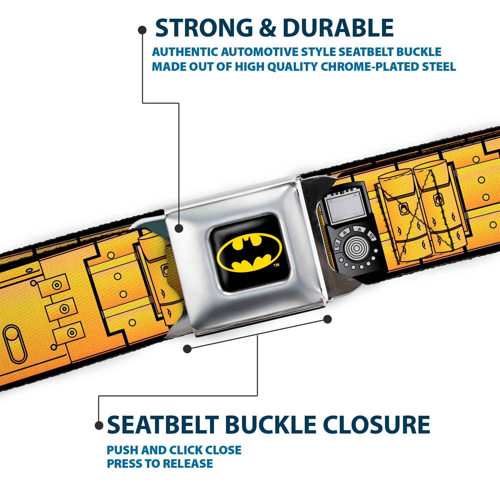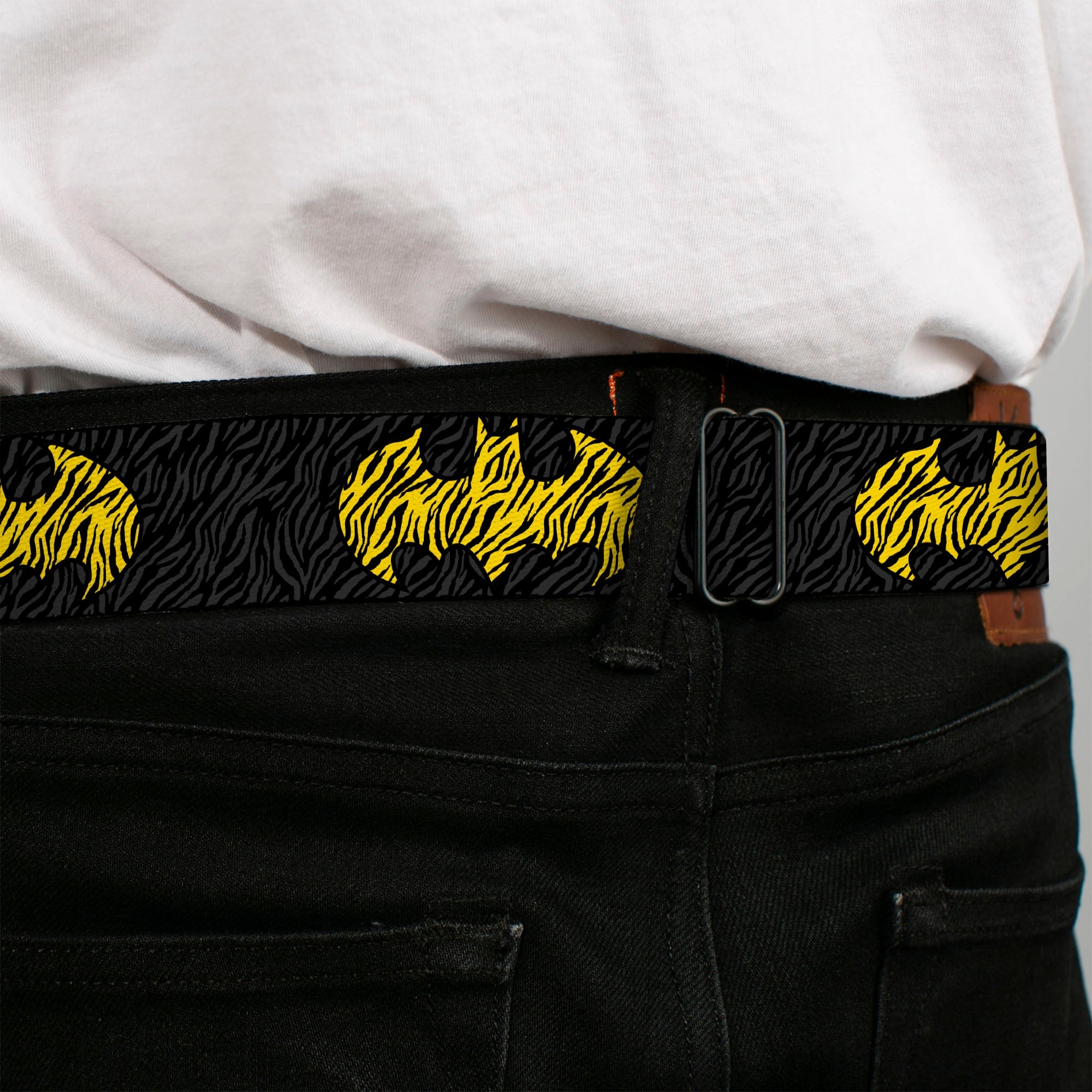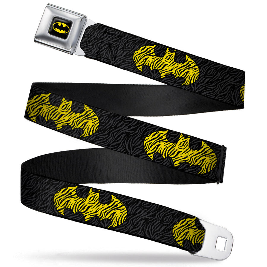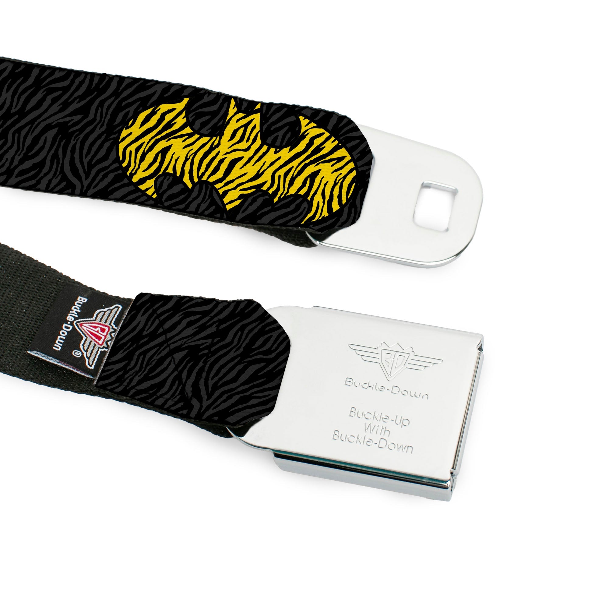 Batman Full Color Black Yellow Seatbelt Belt - Zebra Bat Signal Black/Gray/Yellow/Black Webbing