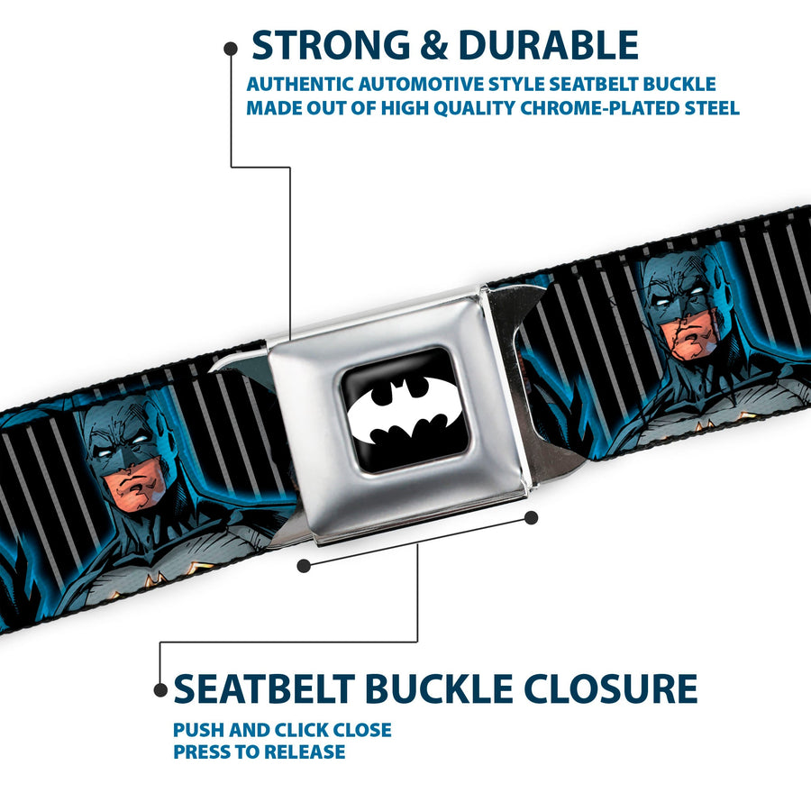 Buckle-Down's iconic Seatbelt Belt is a cool, smart, and exciting blend of fashion and function. Always a conversation starter, our Seatbelt Belt adjusts to perfectly fit your waist while showcasing your unique sense of style. Our Seatbelt Belts are made with authentic automotive style seatbelt buckles making them easy to open and close at the push of a button. Our adult-size Seatbelt Belts are 1.5 inches wide and our kid-sized Seatbelt belts are 1.0 inch wide. This product is Handcrafted in USA by Buckle-Down Inc. and officially licensed by DC Comics.