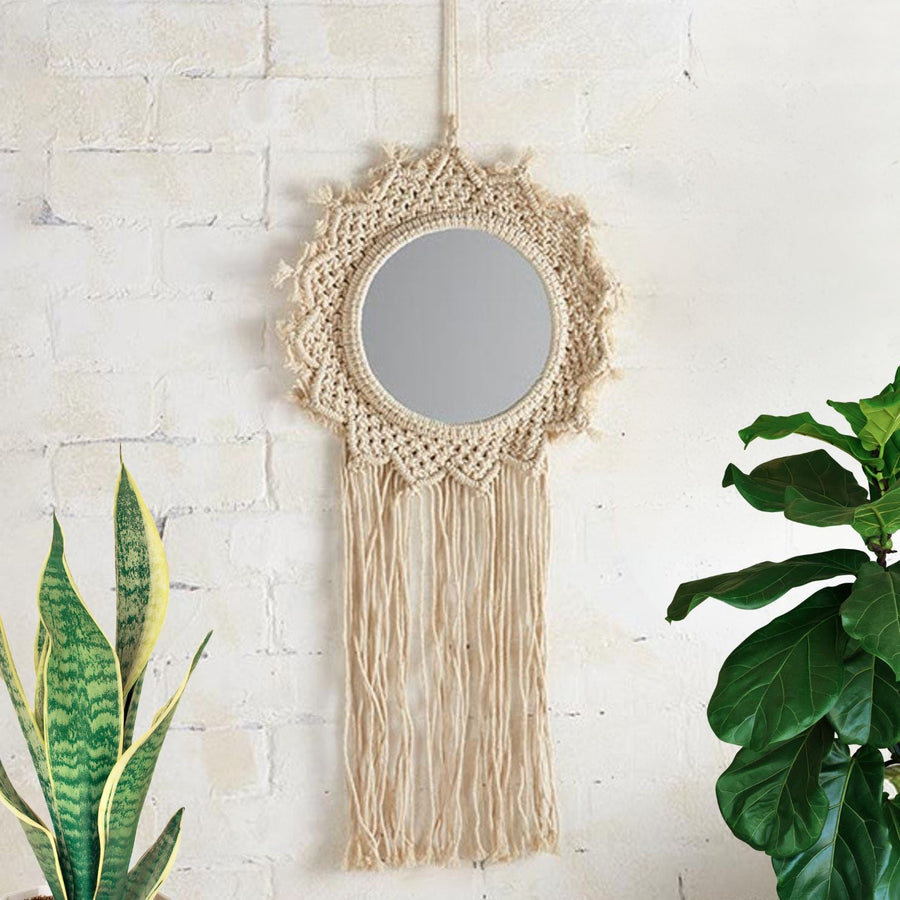 Bohemian style wall mirror; place on a living room, entryway, or bedroom wall for a fresh update. Suitable for any room in the home; an ideal gift for weddings, anniversaries, housewarmings, holidays and more.
