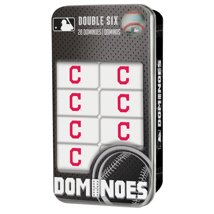 Officially licensed, MasterPieces MLB Cleveland Indians dominoes are perfect for any sports fan! This Double-Sixes Cleveland Indians Dominoes Set comes in a collectible tin box and includes 28 resin dominoes with a team logo printed on the back of each one. Dominoes Instructions are also included. This Sports Dominoes Set is perfect for all sports fans, ages 6 and up! Bring a little bit of pride home with you by purchasing this unique Dominoes Set!