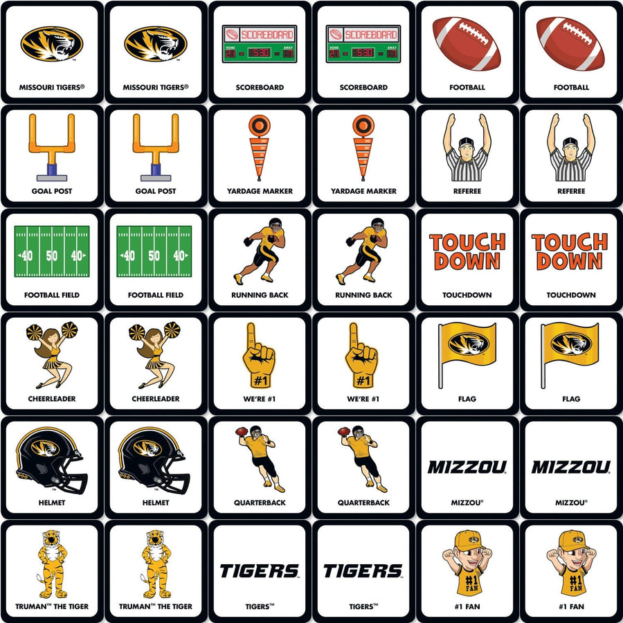 Challenge your memory and show your team spirit with this officially licensed collegiate matching game featuring 18 unique pairs of Missouri Tigers symbols, perfect for fans of all ages. Designed for 2 or more players, this card memory matching game sports a compact size (6.5 x 5.5 x 2.25 inches) and is ideal for family game nights, tailgates, or travel. The high-quality components ensure durability, making it a great choice for kids matching games, especially for ages 3 and up. Whether you’re searching for matching games for kids 8-12 or looking to add to your collection of sports-themed games, this NCAA game is a fun way to boost concentration and memory skills. The vibrant team color cards make it a standout gift for any Missouri Tigers fan, and it pairs perfectly with other sports memory games like those inspired by basketball, baseball, or hockey. Manufactured by MasterPieces, a trusted American puzzle and game company, this unisex game is a must-have for any sports enthusiast or collector looking for a unique twist on classic matching games. No batteries required and no assembly needed, making it easy to set up and play right out of the box.