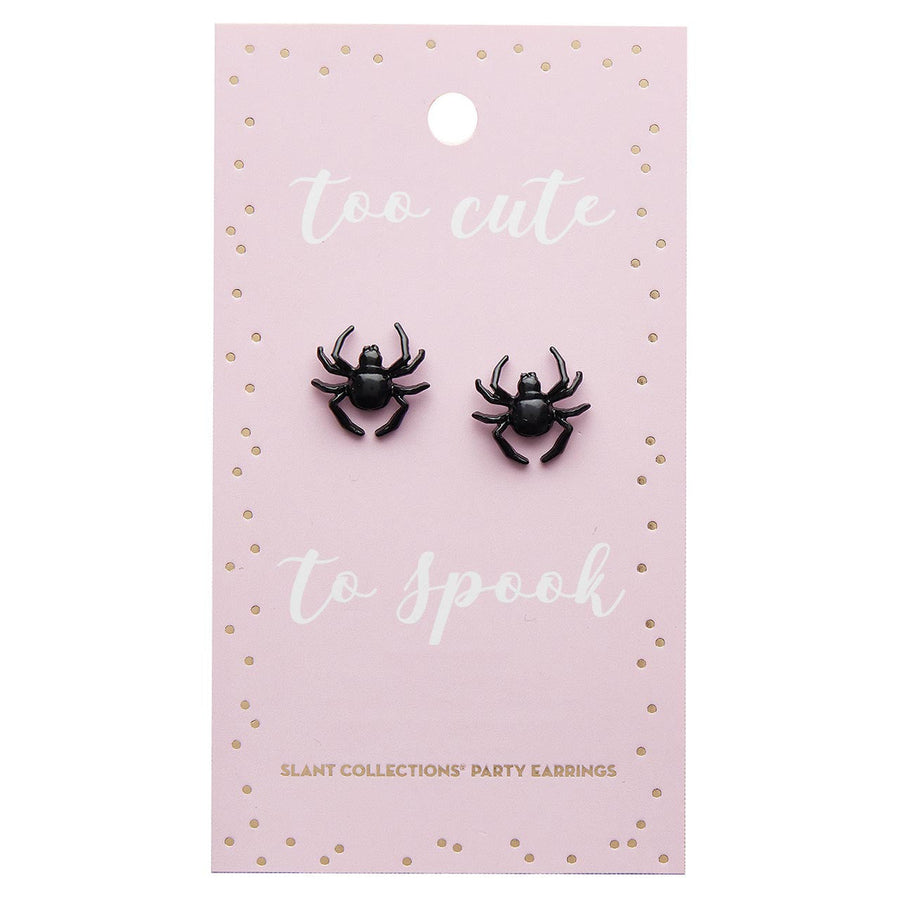 Looking for a spooky accessory to complete your Halloween outfit? These Too Cute to Spook Spider Earrings are the perfect choice for adding a touch of gothic charm to your look. Gift these black stud earrings to a friend who loves all things Halloween for a fun and festive surprise! Surprise your Halloween-loving friend with these Too Cute to Spook Spider Earrings. Made of zinc alloy with a fun backer card, these earrings are the perfect accessory for a spooky night out. Whether you're dressing up for a party or just love all things goth, these earrings are sure to be a hit!