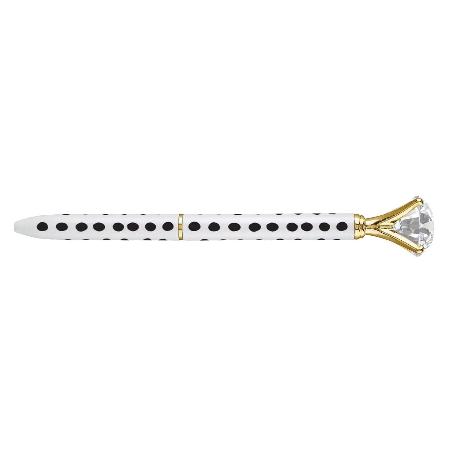 Spruce up your desk with these glamorous gem pens. Black dots design on a white pen body. Ballpoint twist style pen.- Metal