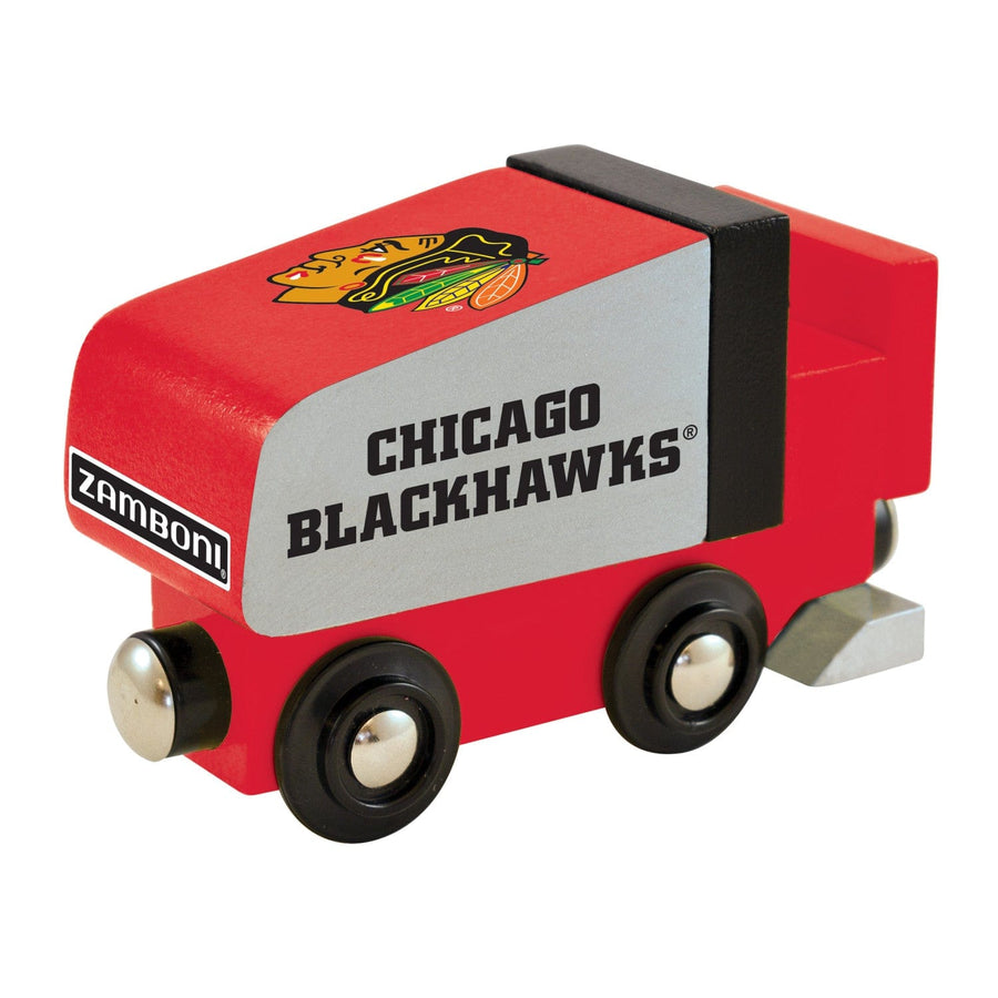 Bring the excitement of NHL hockey to your child's playtime with this officially licensed Chicago Blackhawks Toy Train. Crafted from real wood, this toy train is designed to resemble a Zamboni, making it a perfect addition for young hockey fans. The train is compatible with most one-inch wooden train tracks, allowing for seamless integration into existing playsets. Magnets on the front and back ensure easy linking with other trains, enhancing imaginative play. Packaged with a reusable stand, this toy is both portable and easy to store. Measuring 6.5 inches in height, 2 inches in length, and 5.5 inches in width, it's the ideal size for little hands. The unisex design makes it suitable for all kids aged 36 months and up. With no batteries required, this manual operation toy encourages active play. The black color and Chicago Blackhawks branding make it a standout piece for any young fan's collection. Whether your child is a fan of the Chicago Blackhawks or just loves hockey, this wooden Zamboni toy train is sure to be a hit. Perfect for creating a mini hockey world, this toy can be paired with mini hockey figures or other NHL-themed toys for endless fun.