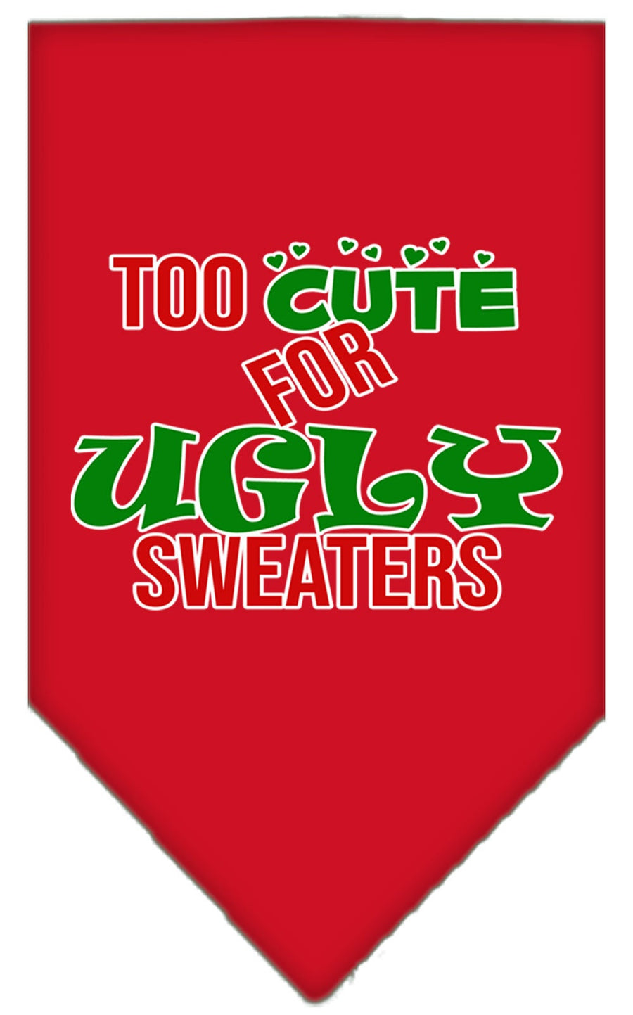 Christmas Pet and Dog Bandana Screen Printed, "Too Cute For Ugly Sweaters"