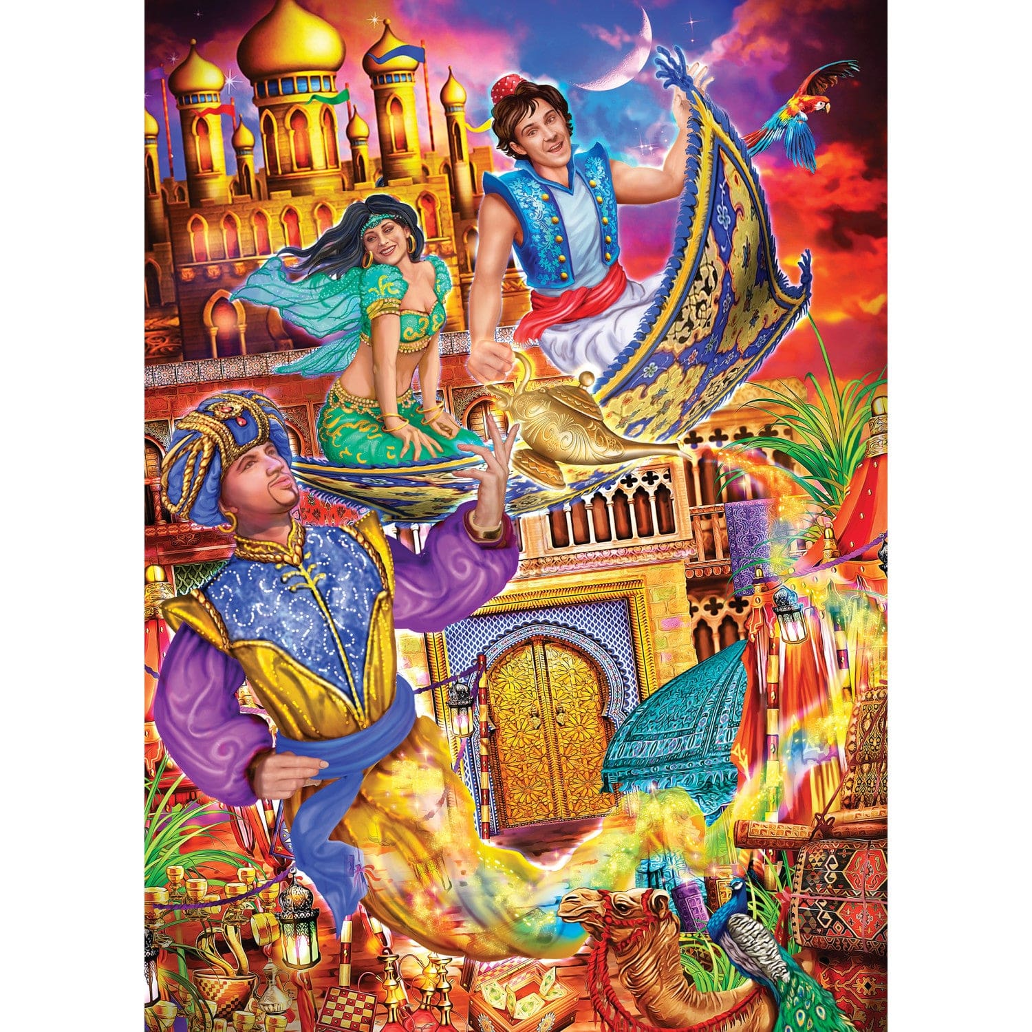 Dive into a world of enchantment with this 1000-piece jigsaw puzzle featuring a colorful artist rendition of Aladdin. Perfect for adults and families, this puzzle measures 19.25 inches by 26.75 inches when completed, offering a challenging yet rewarding experience. Crafted from thick recycled puzzle board, the random cut pieces ensure a tight interlocking fit, enhancing your problem-solving skills and spatial awareness. This puzzle is not just a pastime but a journey into the magical realm of fairytales, making it an ideal choice for those who enjoy 1000 piece challenging puzzles for adults. The vibrant depiction of Aladdin adds a touch of nostalgia, reminiscent of childhood dreams and classic tales. As a part of the Masterpieces brand, known for its quality and creativity, this puzzle is designed for intermediate skill levels, providing hours of entertainment and logical thinking. Its portable nature allows you to enjoy it on any tabletop, making it a versatile addition to your collection of jigsaw puzzles 1000 pieces for adults. Whether you're a fan of fairytales or simply love the intricate challenge of a thousand pc jigsaw puzzles, this Aladdin-themed puzzle is a must-have. With no assembly required, it's ready to bring joy and a sense of accomplishment to your puzzle-solving adventures.