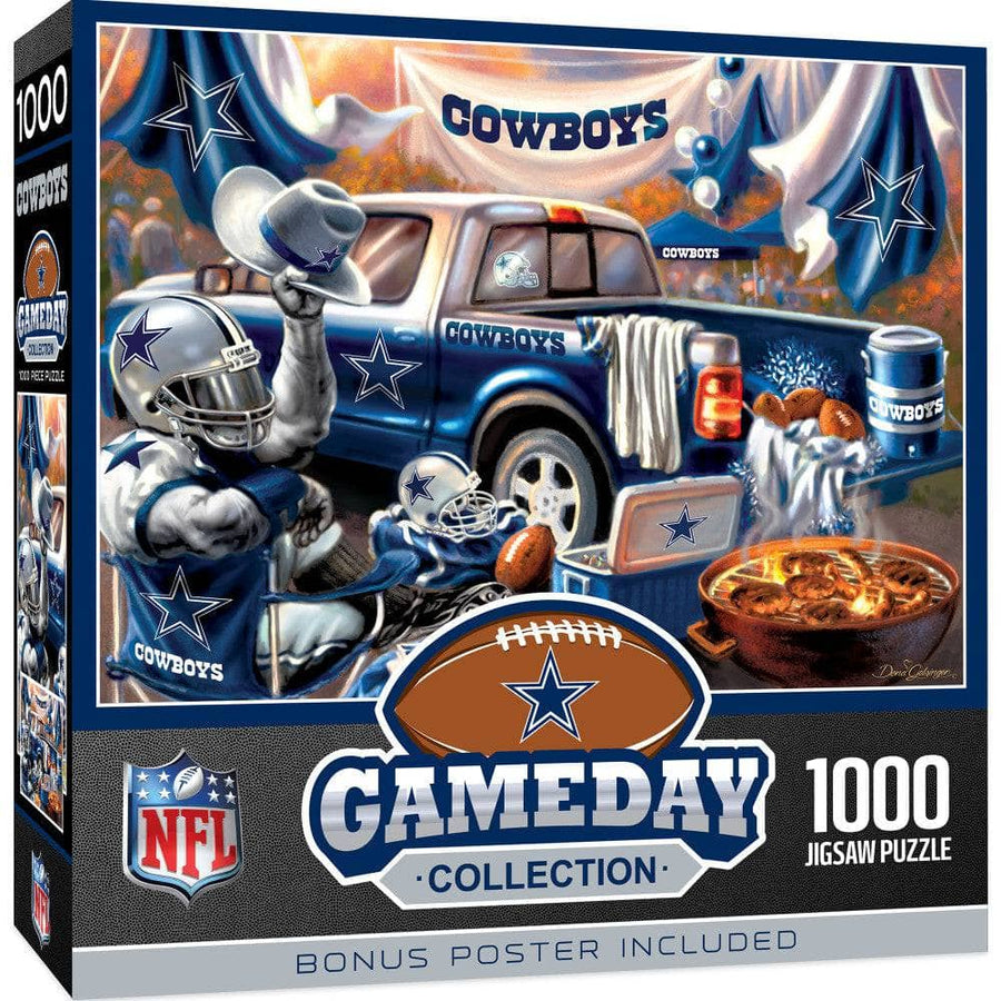 Immerse yourself in the excitement of game day with the MasterPieces NFL Dallas Cowboys 1000-Piece Gameday Tailgate Puzzle. Officially licensed by the NFL, this puzzle is a must-have for Cowboys fans everywhere. Our puzzles feature a unique design with randomly cut pieces, ensuring a new and challenging experience each time you assemble it. Crafted from 100% recycled material and printed with non-toxic, soy-based inks, our puzzles are environmentally friendly and safe for all ages. Designed for adult fans, the level of difficulty is appropriate for grown-up enthusiasts, making it perfect for game nights or solo puzzling sessions. Plus, with our satisfaction guarantee, you can trust that we'll make any issues right. Join us in the joy of bringing families together and celebrating the Dallas Cowboys with our premium quality puzzle.