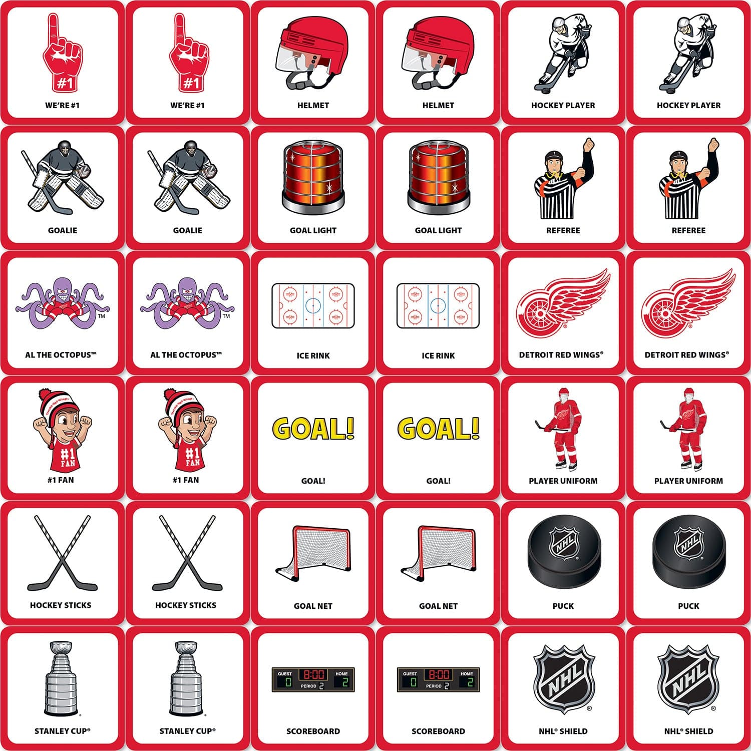 Bring the excitement of hockey home with this officially licensed Detroit Red Wings matching game, designed for fans ages 3 and up. Featuring 18 unique pairs of Detroit Red Wings symbols, this engaging board game helps toddlers and kids develop memory and matching skills while celebrating their favorite NHL team. The compact size makes it perfect for travel, family game nights, or as a fun addition to your collection of hockey accessories for boys. Crafted by MasterPieces, a trusted American puzzle and game company, this game is made from durable paper and comes in team colors, making it a great gift for young fans who love Detroit Red Wings stickers, hats, beanies, or socks. Whether you’re searching for toddler hockey toys or a new tabletop hockey game alternative, this matching game offers hours of laughter and learning. No batteries required, easy to set up, and suitable for ages 3 to 18, it’s a must-have for any Detroit Redwings enthusiast looking to add to their sports-fan games collection.