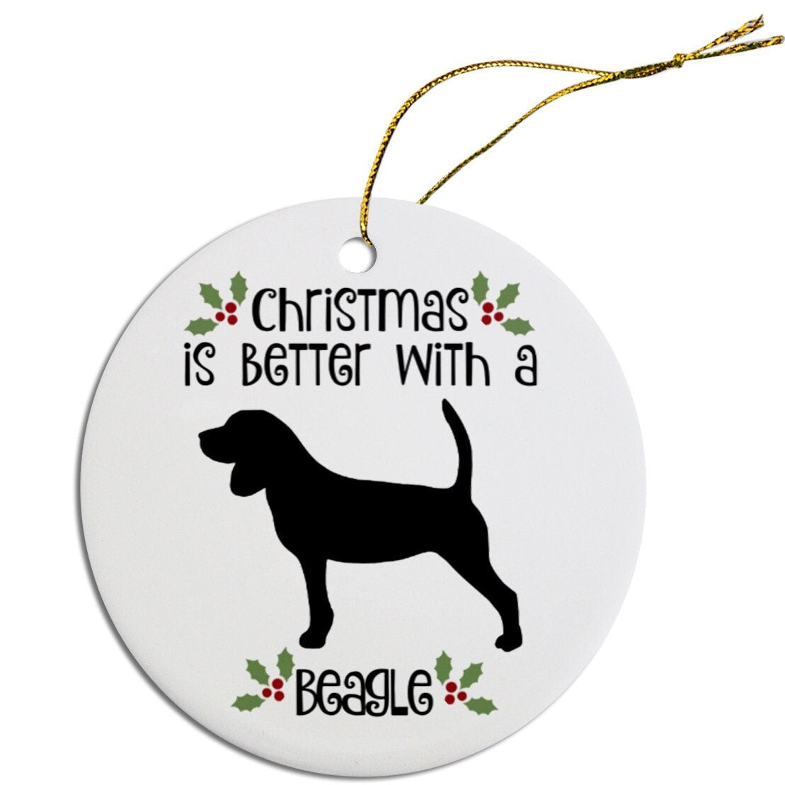 Dog Breed Specific Round Christmas Ornament, "Beagle"