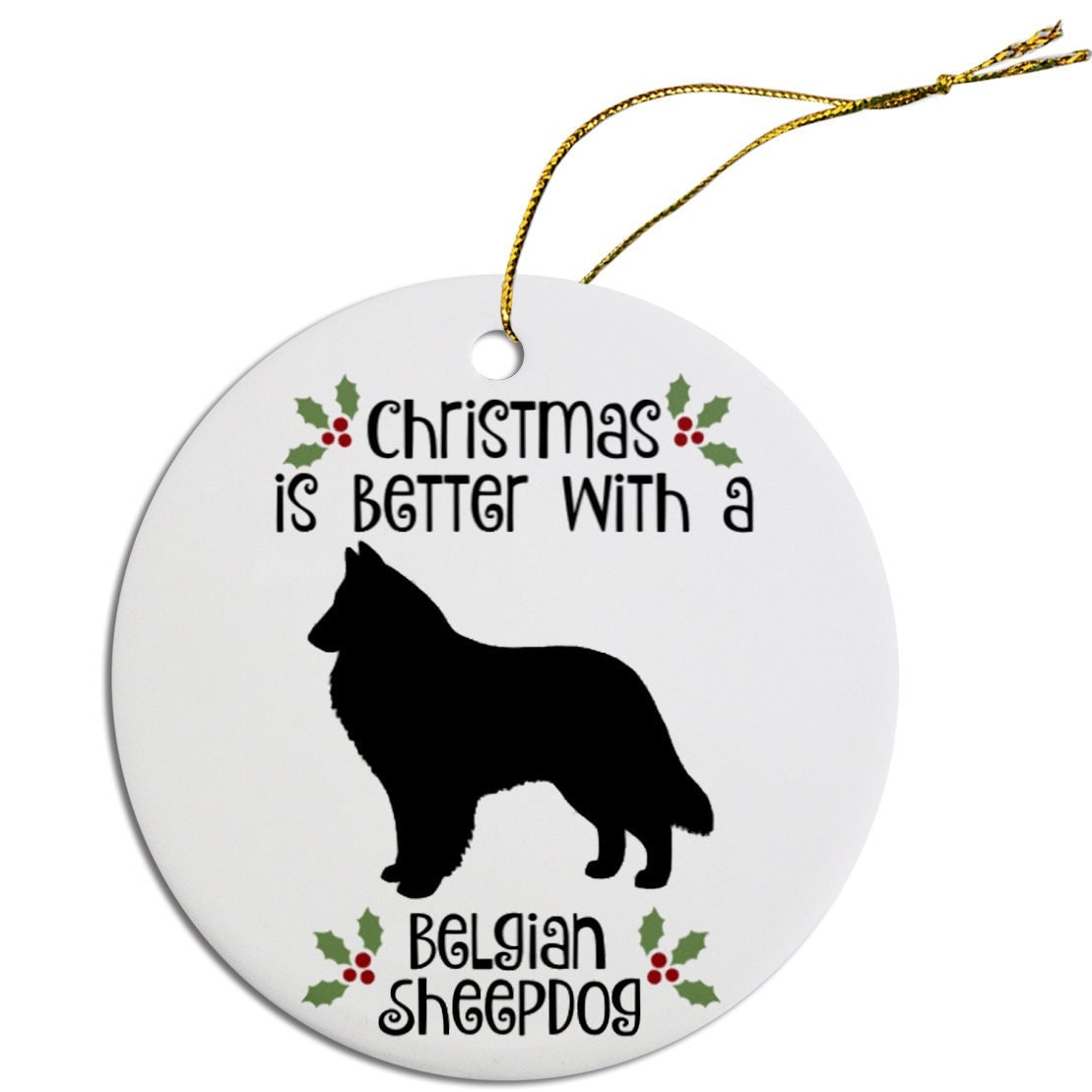 Dog Breed Specific Round Christmas Ornament, "Belgian Sheepdog"