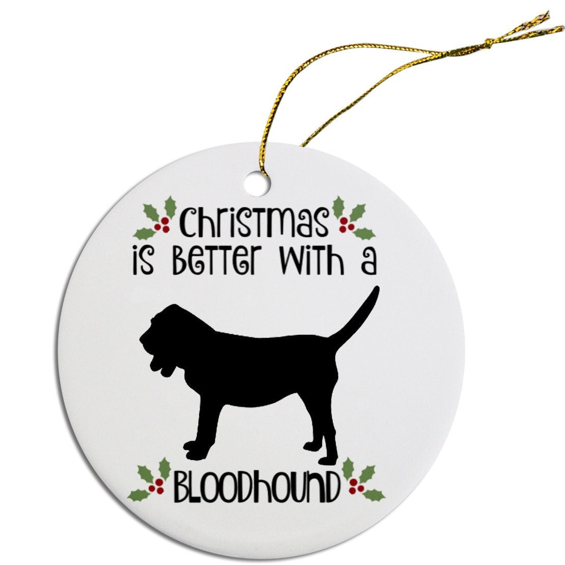 Dog Breed Specific Round Christmas Ornament, "Bloodhound"