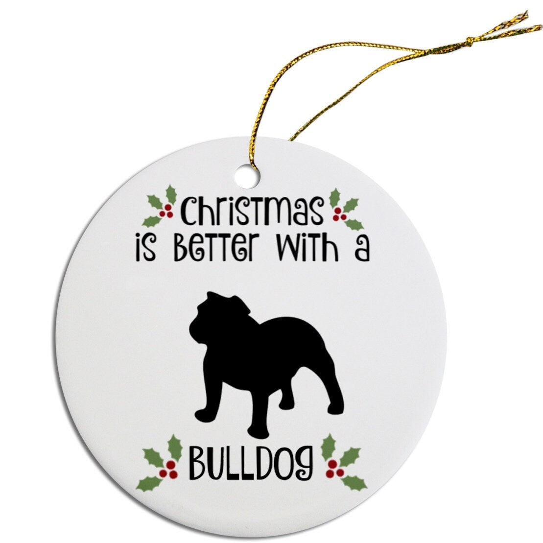 Dog Breed Specific Round Christmas Ornament, "Bulldog"