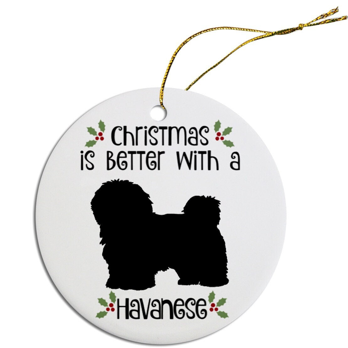 Dog Breed Specific Round Christmas Ornament, "Havanese"