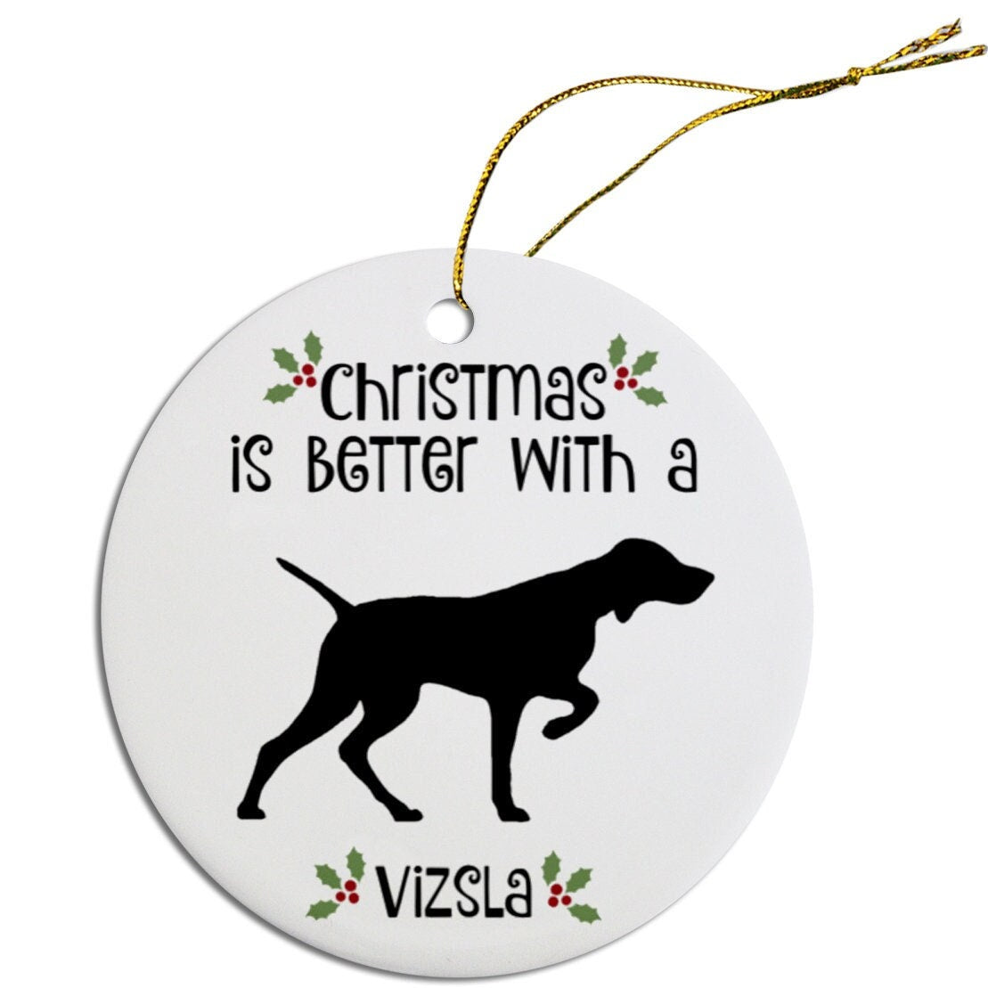 Dog Breed Specific Round Christmas Ornament, "Vizsla"