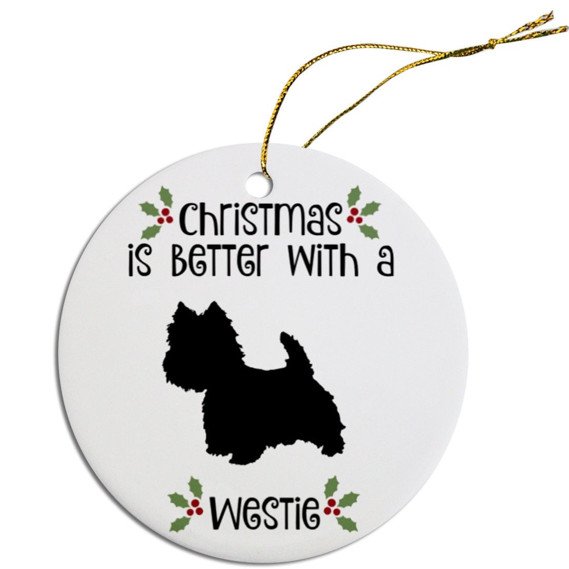 Dog Breed Specific Round Christmas Ornament, "Westie"