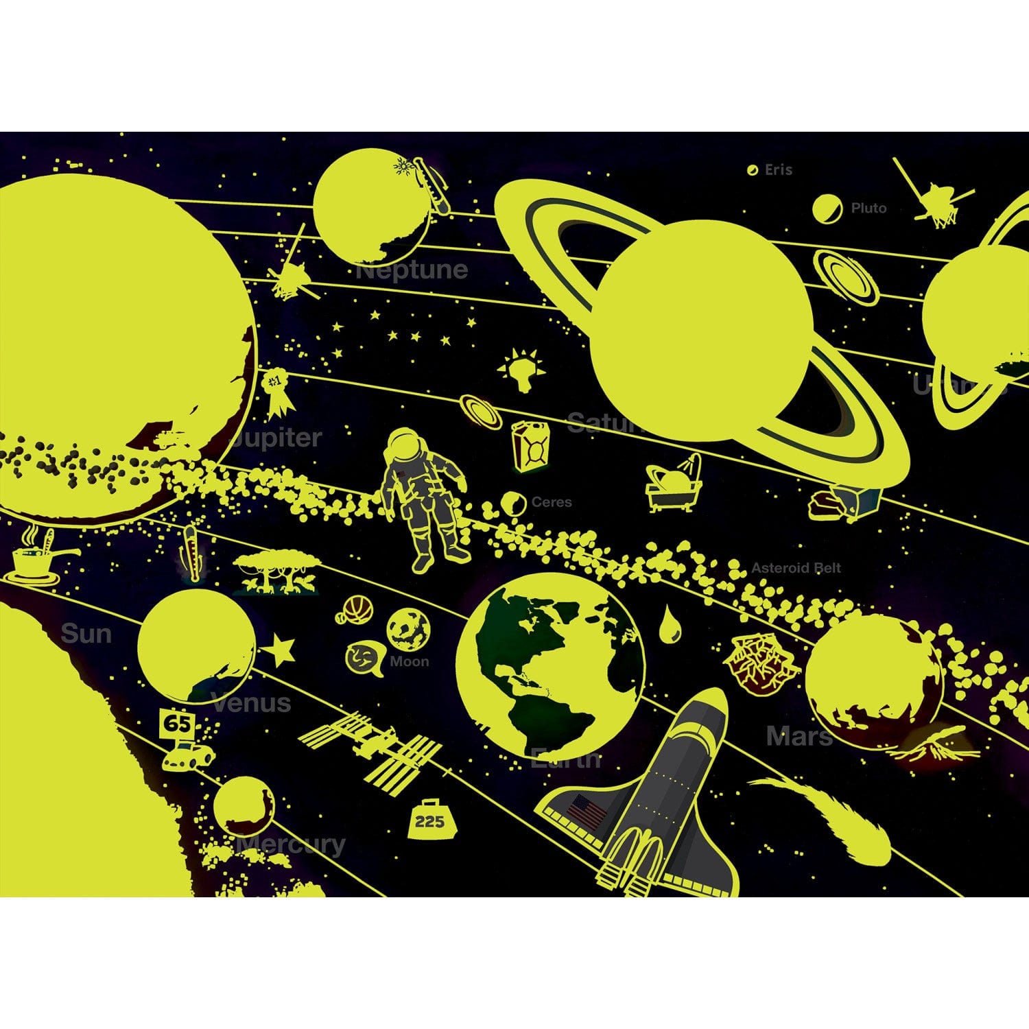 This MasterPieces 16.5"x12.75" 60pc Solar System Puzzle is the perfect way to teach kids about the planets. Learn all the planets when you put together this 60 piece Solar System puzzle. Assemble it and watch it glow in the dark! This puzzle includes a full-color insert with fun facts about the Solar System. Great for children ages 5-10 years old.
