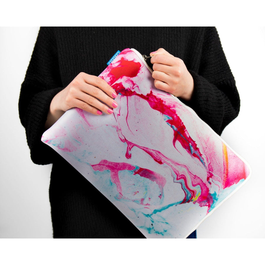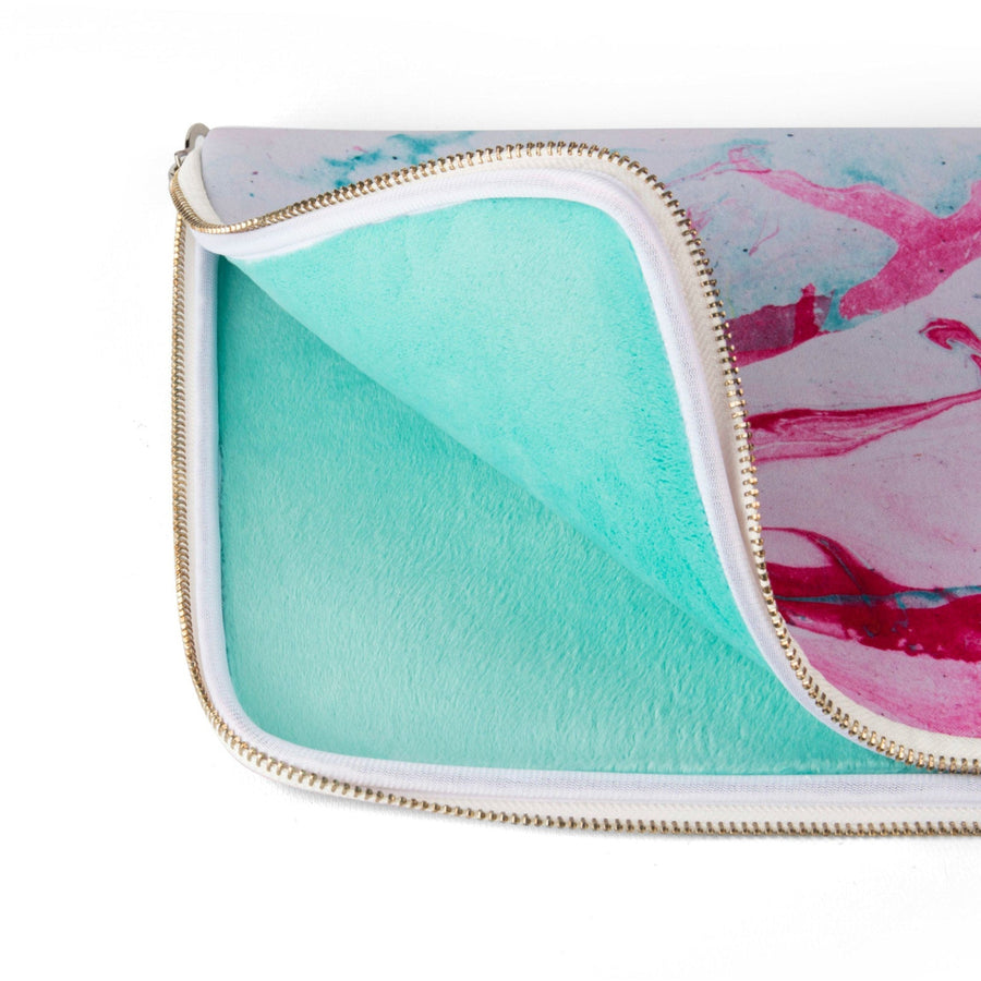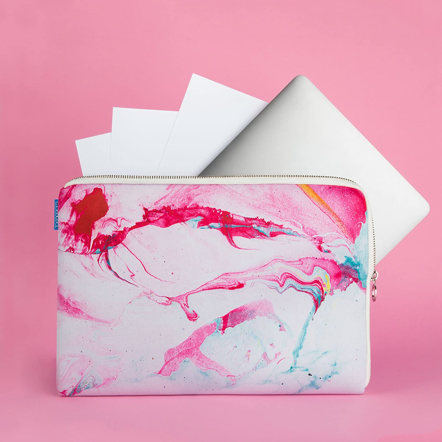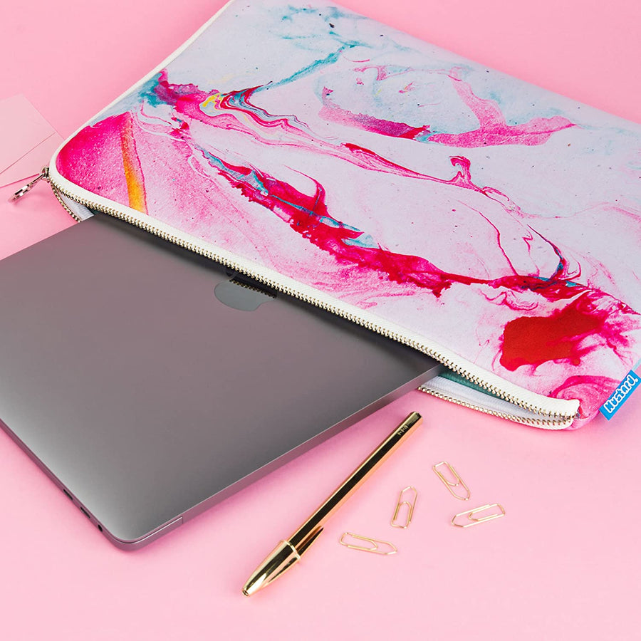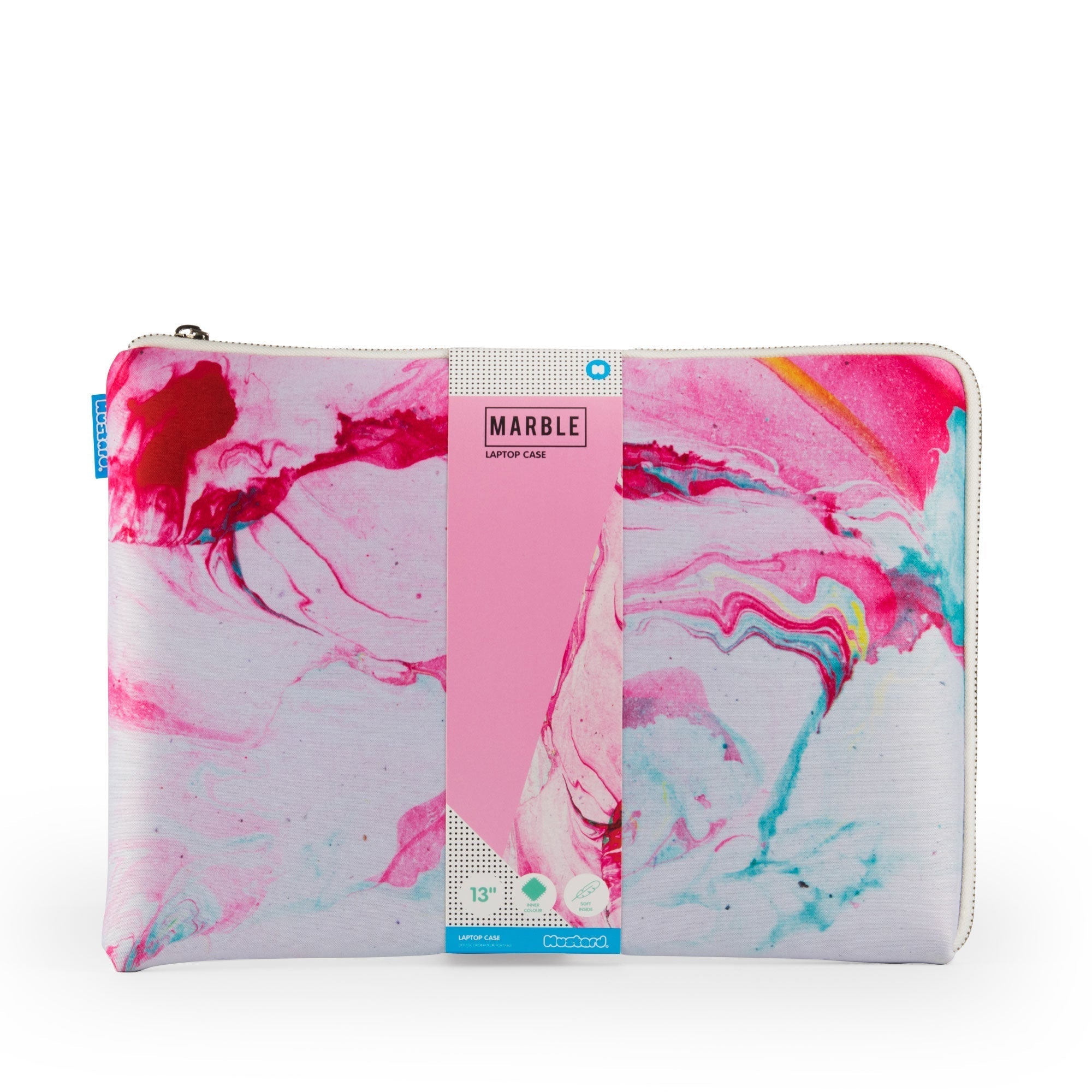 Wrap your 13" or 14" laptop in style with Mustard's Marble Laptop Sleeve Case, featuring a luxurious aqua plush lining for protection against scratches and dust. This chic case, compatible with laptops like the MacBook Air and Lenovo Yoga, makes a thoughtful gift for tech enthusiasts who appreciate both fashion and function.