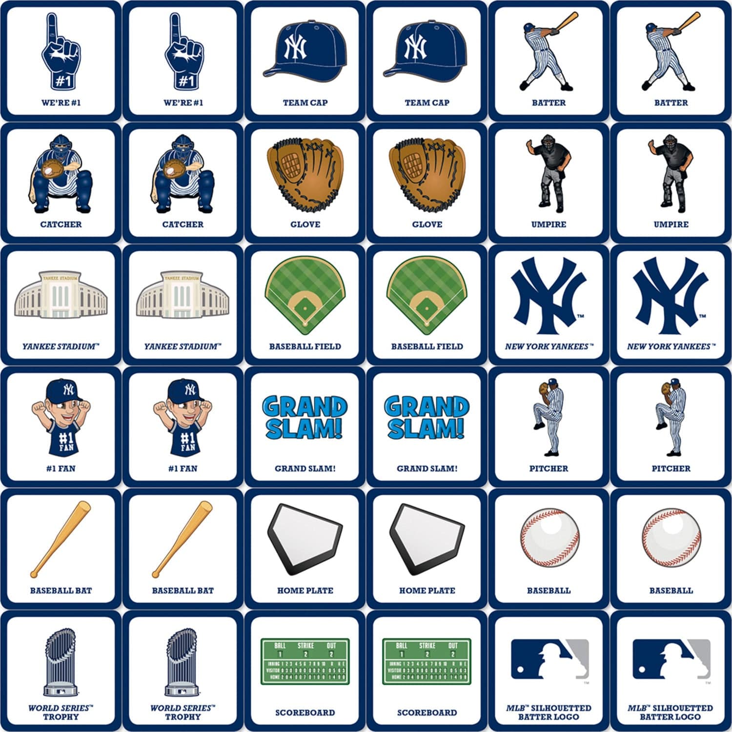 Looking for a fun way to spend some time with the family? Look no further than the MLB New York Yankees Matching Game. This exciting game puts a sports spin on the classic matching game, and is perfect for children, adults, and families of all ages. With 18 unique pairs of symbols, it's sure to keep you entertained for hours on end. Plus, the officially licensed MLB picture cards are made with high-quality stock for durability and lasting enjoyment. So grab a partner and get ready to test your memory and sports knowledge with the MLB New York Yankees Matching Game!