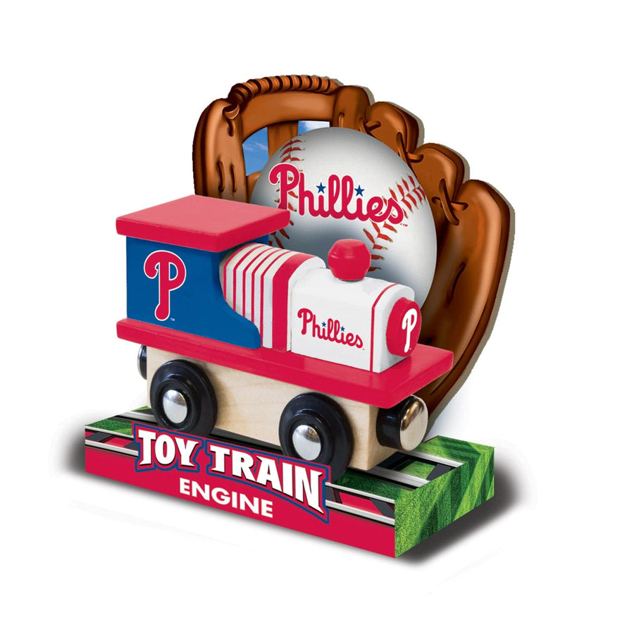 This officially licensed MasterPieces MLB Philadelphia Phillies Team Train Engine is a must-have for all kids and sports fans! Each end of the train has secure magnets to easily connect to other trains sections. The wooden toy train is compatible with most 1" wooden train tracks and comes in your favorite team's colors and logo.