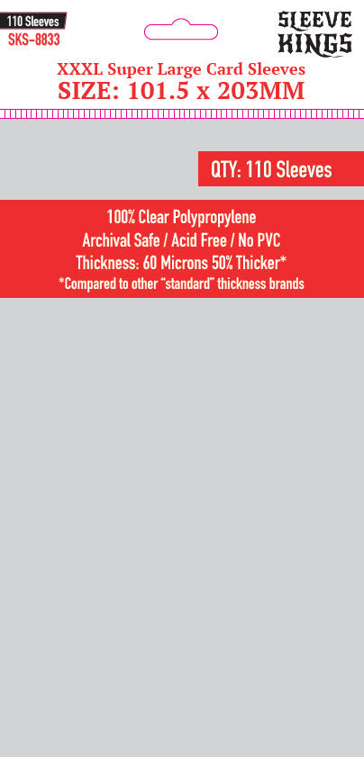 XXXL Super Large Game Card Sleeves (101.5x203mm) 110 Pack, 60 Micron, SKS-8833